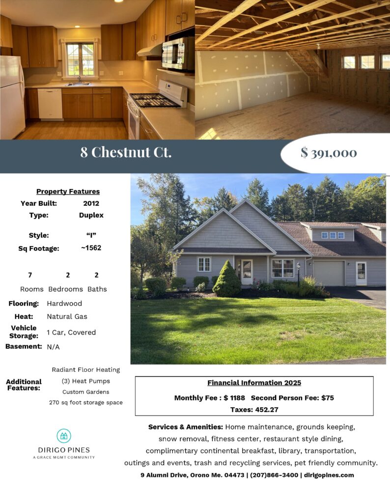 You can customize your own finishes, working with the high-quality craftsmanship of the original builder. As part of the cooperative, you’ll have peace of mind knowing that maintenance is covered, including routine mowing, snow removal, furnace cleaning and appliance replacement.